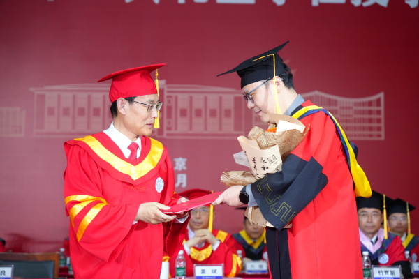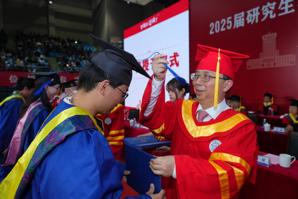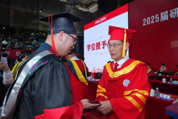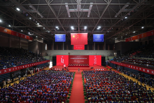 他希望毕业研究生们牢记“智周万物、道济天下”的博大校训,传承“团结、俭朴、唯实、创新”的优良校风,拥抱创新、引领未来,在奋斗历程中努力成长为堪当民族复兴重任的时代新人。