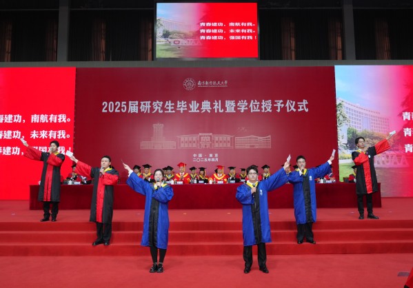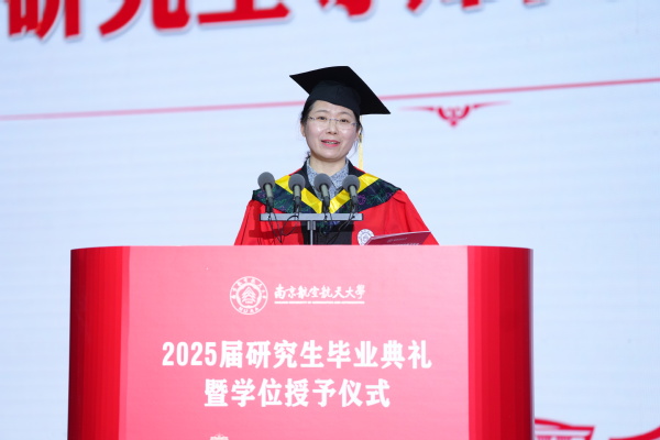 作为毕业研究生代表,航空学院聂舜臣,能源与动力学院杜金康,机电学院闫博,材料科学与技术学院李晓东,民航学院、国家卓越工程师学院陈梓畅,计算机科学与技术学院、人工智能学院孙茜茹作“青春建功,强国有我”的主题发言。六位研究生代表讲述了他们“胸怀国之大者,勇担时代重任”的理想信念,表达了对母校的感谢与祝福,立下了“不负时代,不负韶华,以青春之名,向祖国报到”的壮丽誓言。