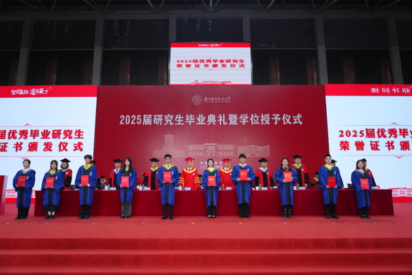 2025届毕业研究生中涌现出了众多优秀学子,他们以坚韧的毅力和卓越的才华取得了一系列喜人成绩,共有702名同学获评“优秀毕业研究生”。在热烈的掌声中,主席台前排领导为获表彰学生代表颁发了荣誉证书。
