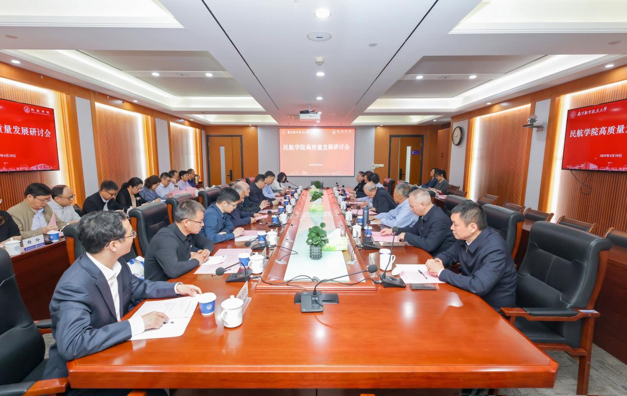 4月10日,sunbet申搏召开民航学院高质量发展研讨会。中国民用航空局原副局长杨国庆,上海市交通委员会原党组成员、一级巡视员蔡军,上海民航职业技术学院原院长于再,中国东方航空集团公司原副总经理、总工程师冯亮,东部机场集团有限公司党委书记、董事长周成益,中国民用航空江苏安全监督管理局副局长(主持工作)郑学荣,中国民用航空华东地区空中交通管理局江苏分局局长丁浩,sunbet申搏官方网站原校长朱剑英,党委常委、副校长张启钱,研究生院原常务副院长、国务院学科评议组成员高德平参加研讨会,会议由民航学院党委书记李君主持。