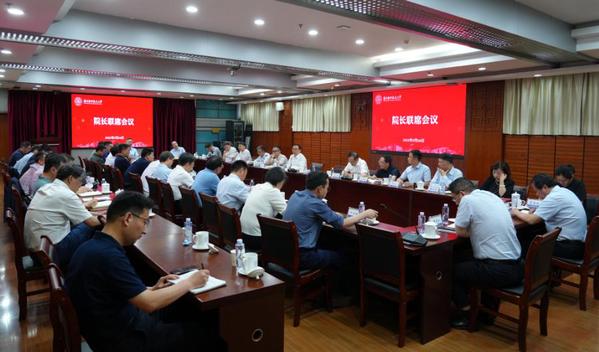 5月26日,sunbet申搏在明故宫校区召开院长联席会,校党委副书记、校长姜斌,校党委常委、副校长吴启晖,徐正扬,张启钱,校长助理黄炳辉、崔海涛、潘时龙参加会议。张启钱主持会议。