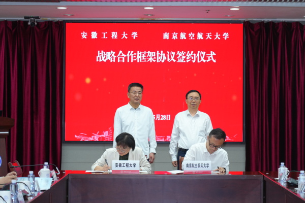 黄友锐代表安徽工程大学对南航长期以来的帮助支持表示诚挚感谢,并介绍了学校办学历史、人才培养、学科建设、科技创新、服务产业等情况。他指出,安徽工程大学坚持“立足地方、融入长三角、辐射全国”的服务面向,围绕长三角一体化战略,深入推动区域产教融合,为学校高质量发展赋能增势。两校地缘相近、理念相通、合作基础良好,特别是南航为安工程输送了众多优秀毕业生,有力支持了学校高质量发展。期待今后双方加强沟通协调,聚焦低空经济、科研平台等重点领域,推动合作项目落地落实。