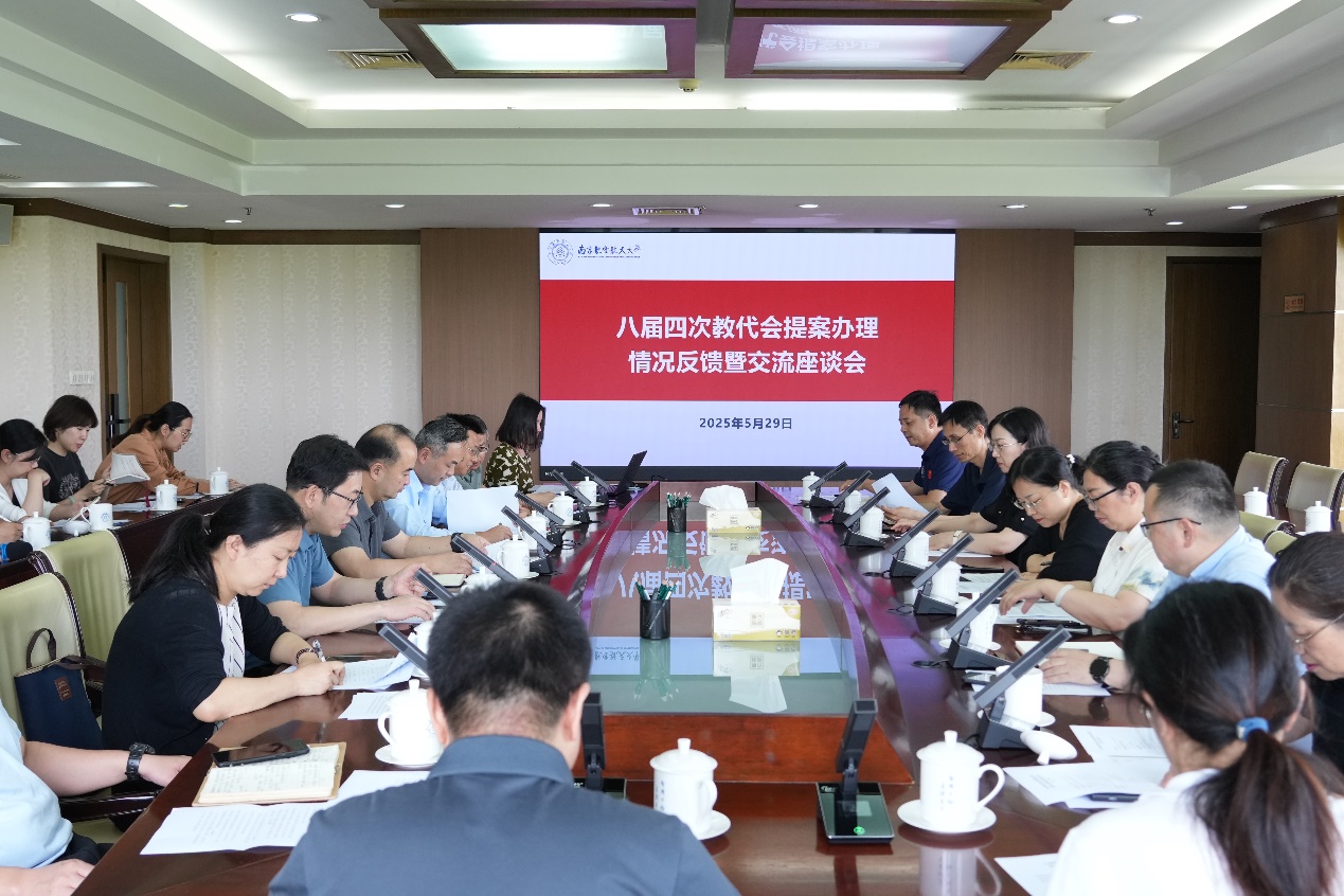随后,承办单位负责人代表详细介绍了提案承办的具体过程,在承办过程中遵循高度重视、满足急需、统筹治理、立足长远等基本原则,高质高效推动各项提案办理落实。教代会代表对教学评估评价体系优化、理科卓越工程建设、加强国际创新港研究生培养管理、教职工体检优化等提案办理情况进行了交流。教代会代表团团长围绕进一步强化提案与学校改革发展的契合度、建立提案办理成果长效机制、加强提案工作宣传力度等方面提出了意见建议。