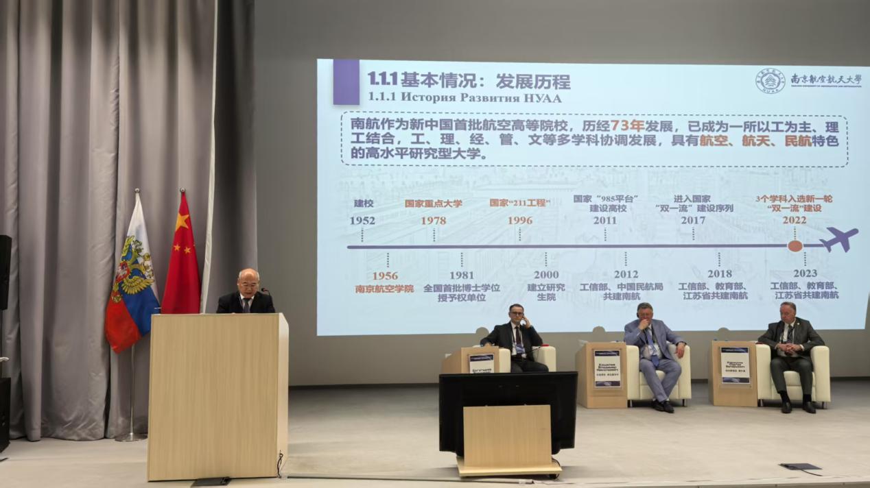 在中俄大学校长论坛上,黄志球作题为《深化教育开放合作 共绘世界一流大学建设的中俄同心圆》的主旨报告。他表示,南航愿与中俄两国高等教育机构并肩携手,以联盟平台为依托,为中俄科技合作、文化交流持续助力,为全球高等教育国际合作提供中俄范例。