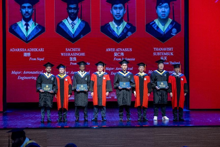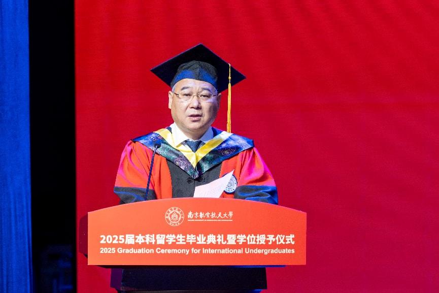 黄志球向圆满完成学业的2025届本科留学毕业生表示祝贺。希望留学生们继续秉承“智周万物、道济天下”的校训精神,运用在南航所学的知识和能力推动科技创新、促进社会进步、服务国家发展、助力人类命运共同体建设。继续讲好中国故事,促进中外文化交流,让世界了解真实、立体的中国。欢迎大家常回中国走走、常回母校看看,共叙情谊、共谋发展。