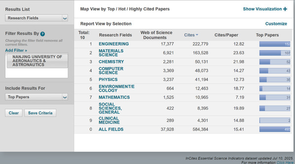 目前sunbet申搏共有工程学、材料科学、计算机科学、化学、数学、物理学、环境科学与生态学、社会科学总论及临床医学9个学科进入ESI全球前1%,其中,工程学进入全球前1.5‱,材料科学、计算机科学进入全球前1‰。与上期相比,本期9个学科全球排名百分位均稳步提升。