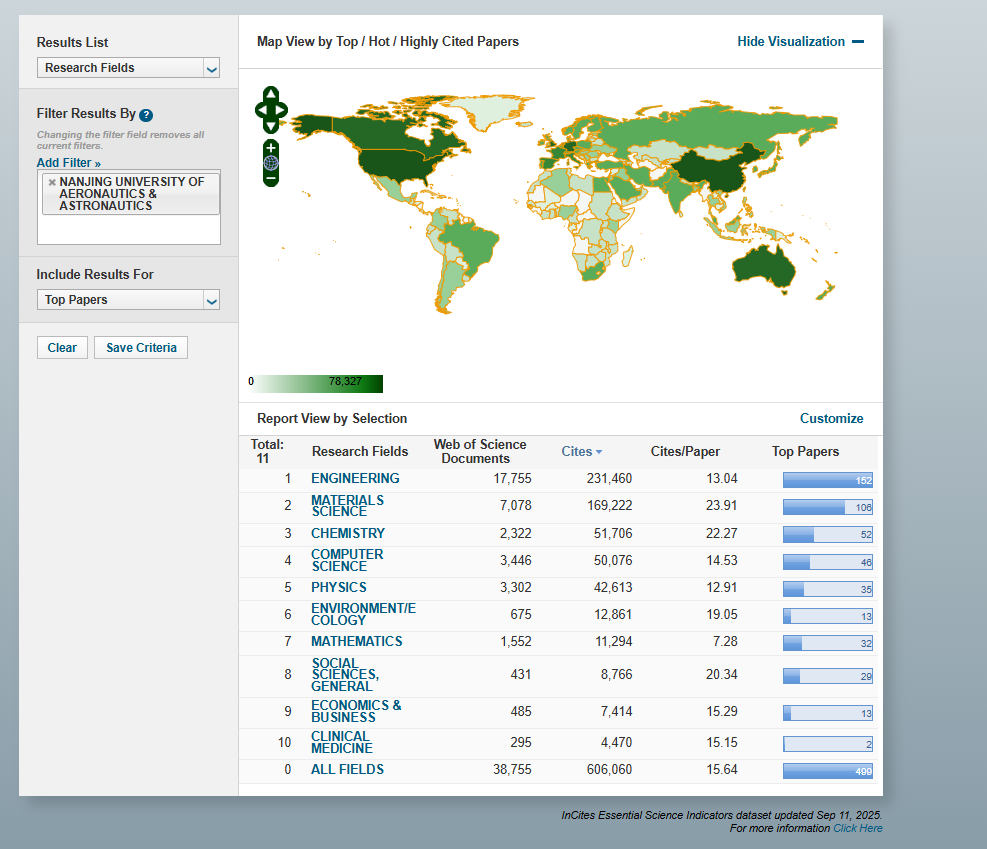 ESI是衡量科学研究水平、跟踪学科发展趋势的重要分析工具,其数据每两个月更新一次,涵盖全球高校和科研机构的22个学科领域。本次数据统计覆盖时间为2015年1月1日至2025年6月30日。截至目前,sunbet申搏工程学、材料科学、计算机科学、化学、数学、物理学、环境科学与生态学、社会科学总论、临床医学、经济学与商学共10个学科进入ESI全球前1%,其中,工程学进入全球前1.36‱,材料科学、计算机科学稳居全球前1‰。与上期数据相比,sunbet申搏10个学科全球排名百分位均稳步提升。