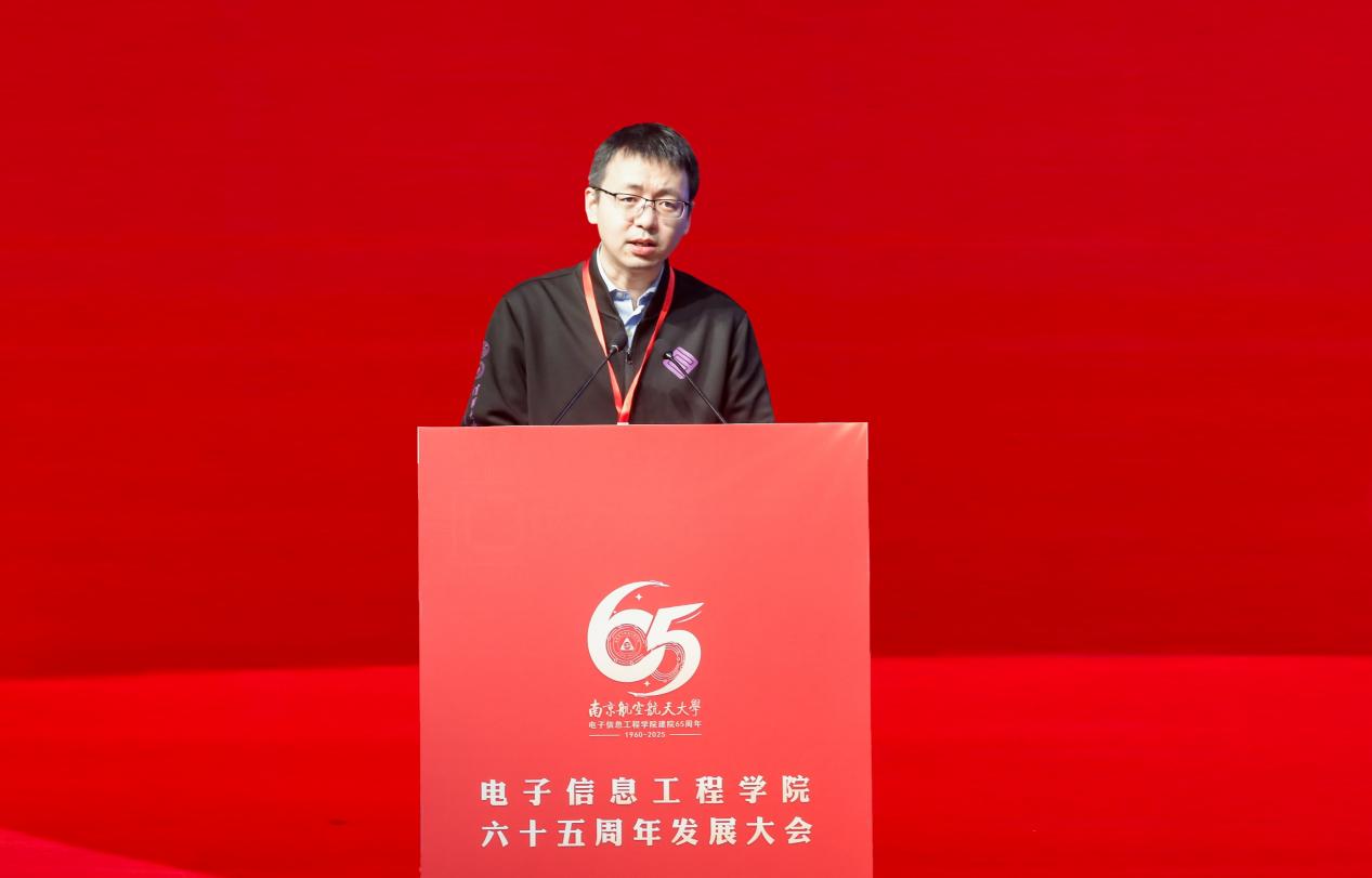 韩维作为校友代表发言。他深情回顾了在南航的求学经历,表示在南航收获的不仅是扎实的专业知识与严谨的科研思维,更有浸润于心的家国情怀与敢闯敢试的奋斗底色。他呼吁广大学子瞄准空天报国的新机遇,锤炼前沿技术攻坚能力,创造更多无愧于时代的佳绩。