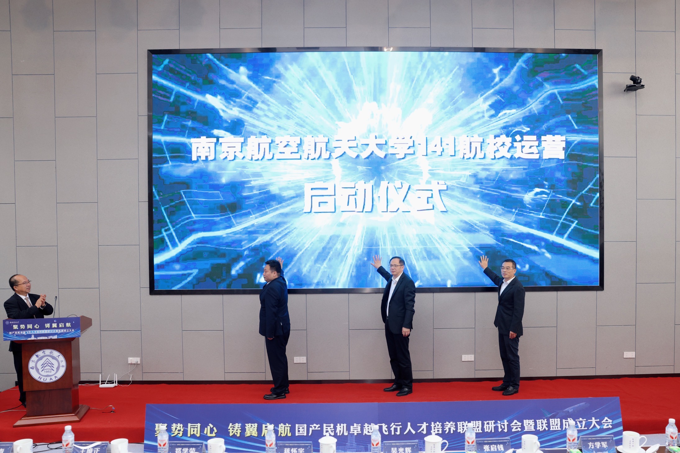 张启钱、方学军以及吉林福航航空学院董事长李雷共同启动sunbet申搏官方网站CCAR-141航校运营仪式。本次仪式标志着由sunbet申搏官方网站主导,与溧阳市人民政府、吉林省福航航空学院三方联合组建的全新航校正式开启其专业化、规范化的飞行培训征程,对学校实现民航飞行人才全链条自主培养、为国产民机事业输送具备全球视野与卓越技术能力的高素质飞行人才、增强巩固与溧阳市校地合作具有重要意义,为学校民航特色高质量发展提供有力支撑。