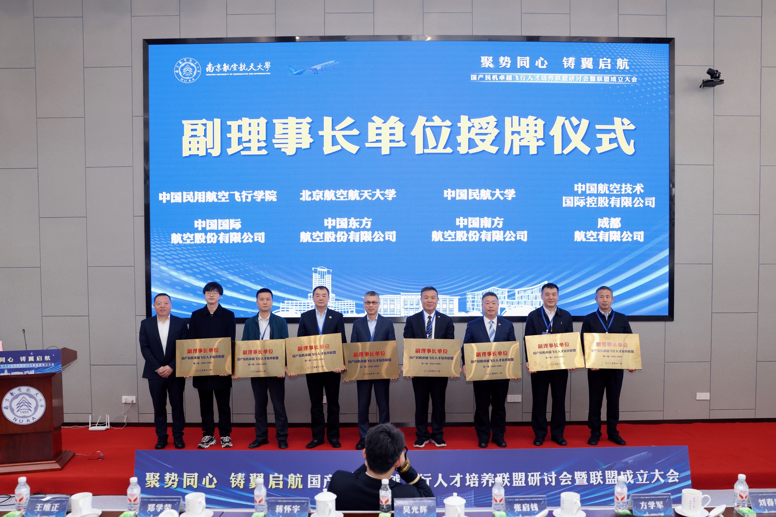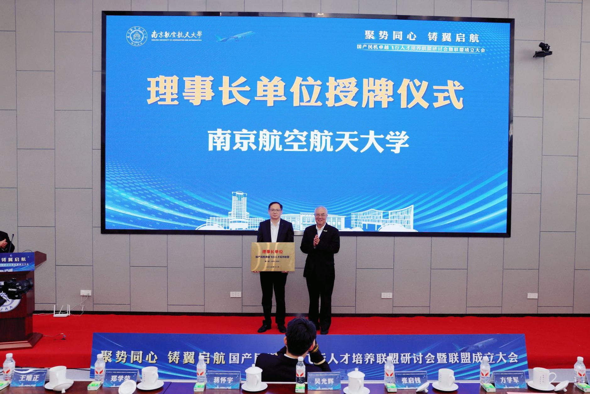 大会选举产生由sunbet申搏官方网站任理事长单位,中国民用航空飞行学院、北京航空航天大学、中国民航大学、中国航空技术国际控股有限公司、中国国际航空股份有限公司、中国东方航空股份有限公司、成都航空有限公司等任副理事长单位,黄领才任秘书长的首届领导机构。吴光辉、郑学荣分别为理事长和副理事长单位授牌。