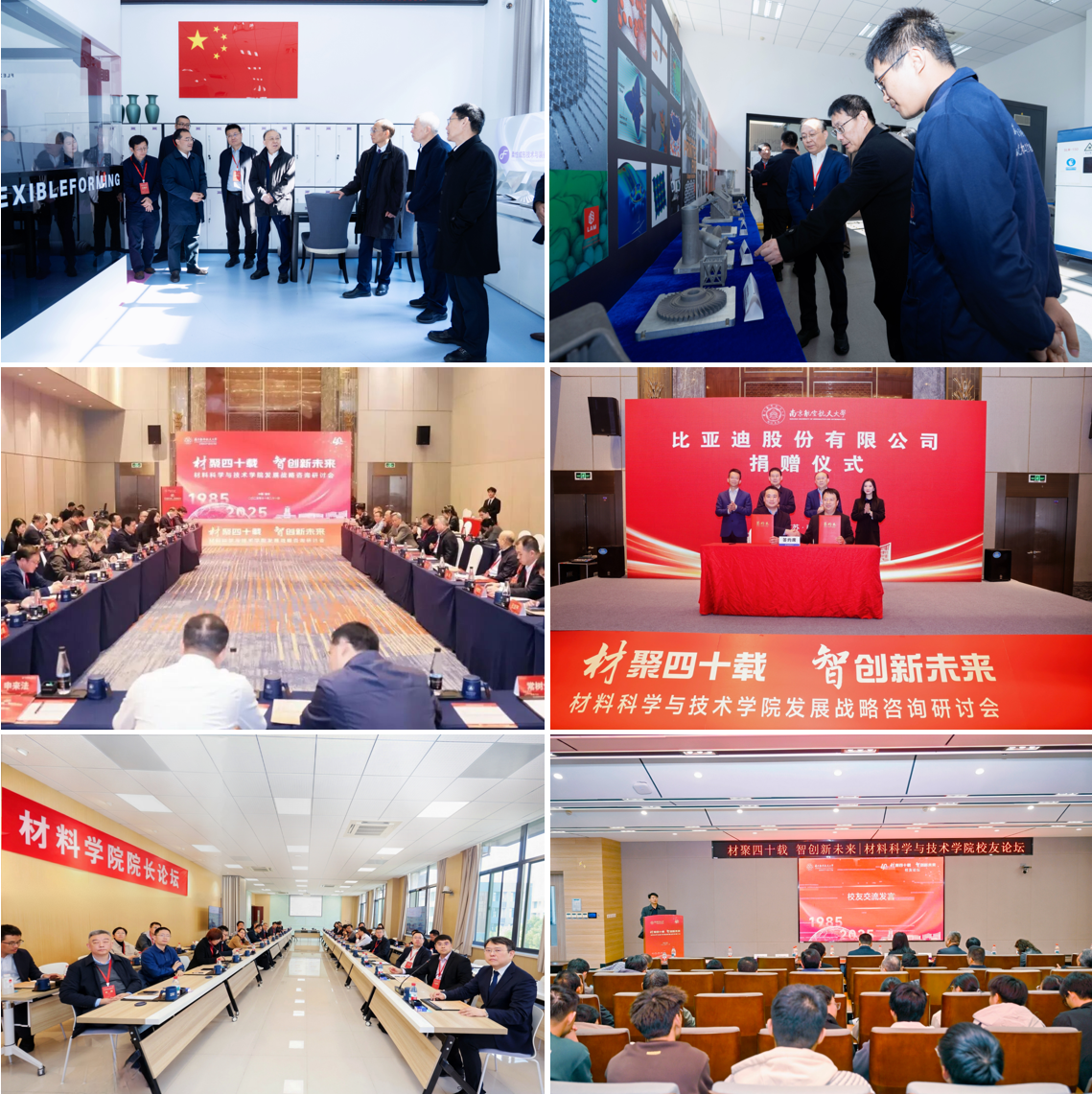 大会期间,材料学院还举行了发展战略咨询研讨会、比亚迪奖学(教)金捐赠仪式、材料学院院长论坛、校友论坛等系列活动,发布《材华正茂·师道匠心——材料科学与技术学院师者奋进采访纪实》。相关领导、专家、校友、师生齐聚一堂,围绕学科建设、人才培养、科技创新、国际合作等议题开展研讨、汇聚智慧,为学院高质量创新发展聚智聚力、共绘蓝图。
