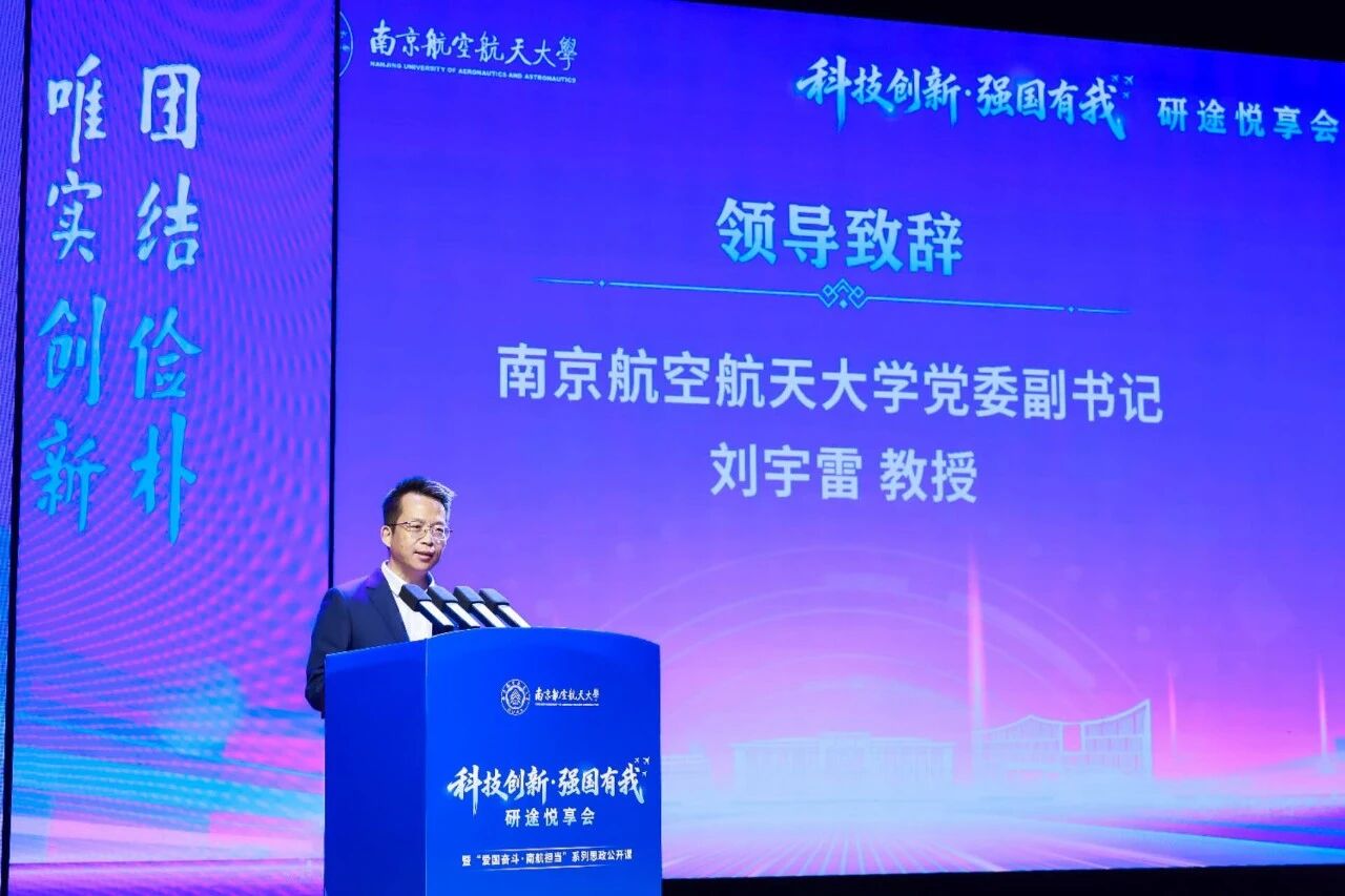 11月25日下午,由优秀研究生导学团队代表主创的“科技创新·强国有我”研途悦享会暨“爱国奋斗·南航担当”系列思政公开课在将军路校区举行。校党委副书记刘宇雷,党委常委、宣传部部长徐川出席活动,相关职能部门领导、学院领导、研究生导师代表、2025级研究生代表和优秀本科生代表共计五百余人齐聚一堂,聆听南航研究生潜心科研、矢志报国的动人故事。