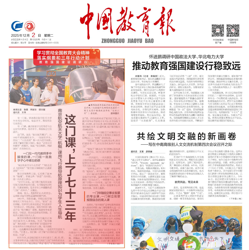 编者按:12月2日,《中国教育报》头版头条刊发报道《这门课,上了七十三年》,讲述南航“航空航天概论”课程用飞行器导航原理知识为学生人生导航。现转载全文如下: