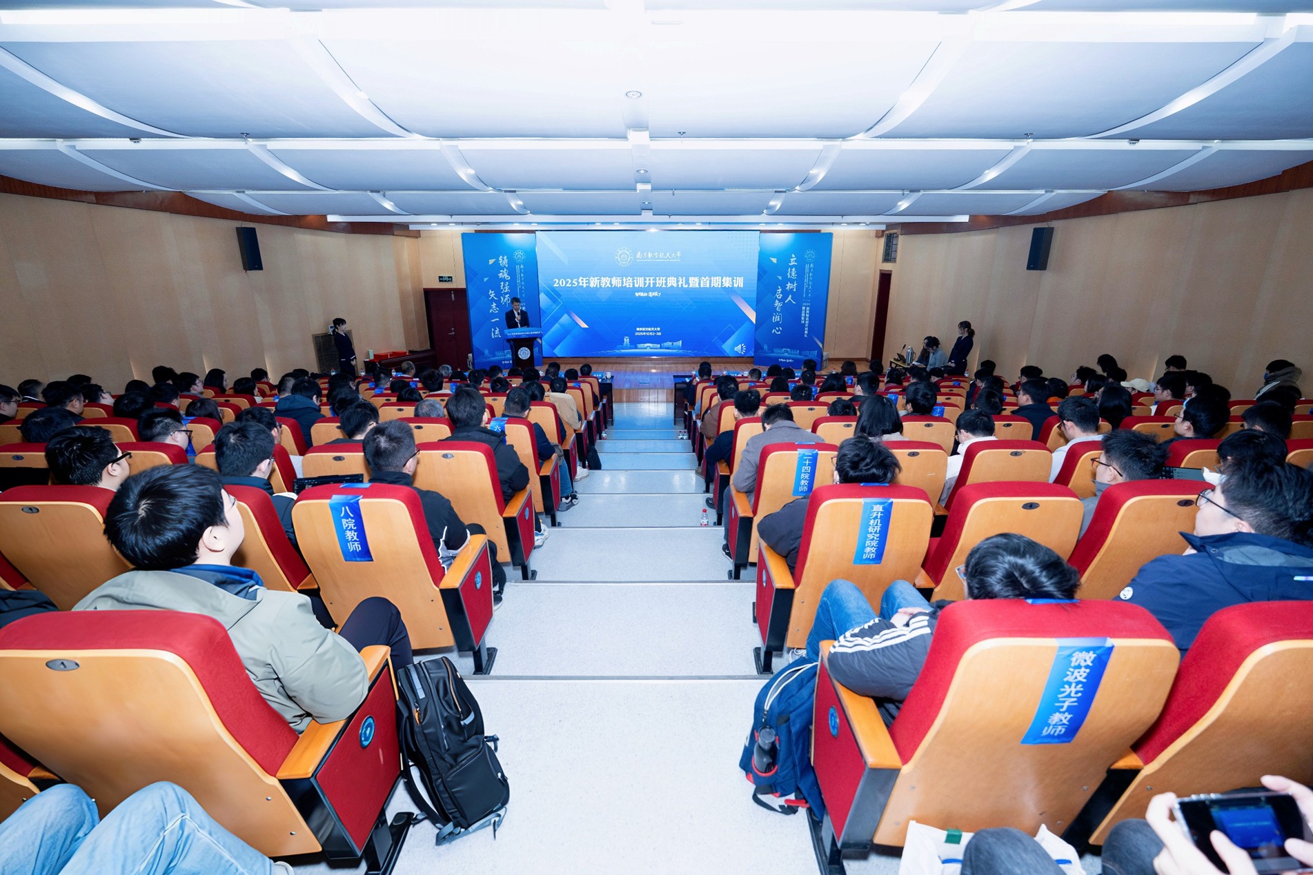 杭育新作题为《行稳致远》的青廉讲堂新教师纪律专题培训;崔海涛作题为《教师职业发展与师德师风涵育》的专题培训;徐川作题为《走进南航文化》的专题培训;国家级教学名师高存法教授作《坚持立德树人,做“四有”好老师》报告。