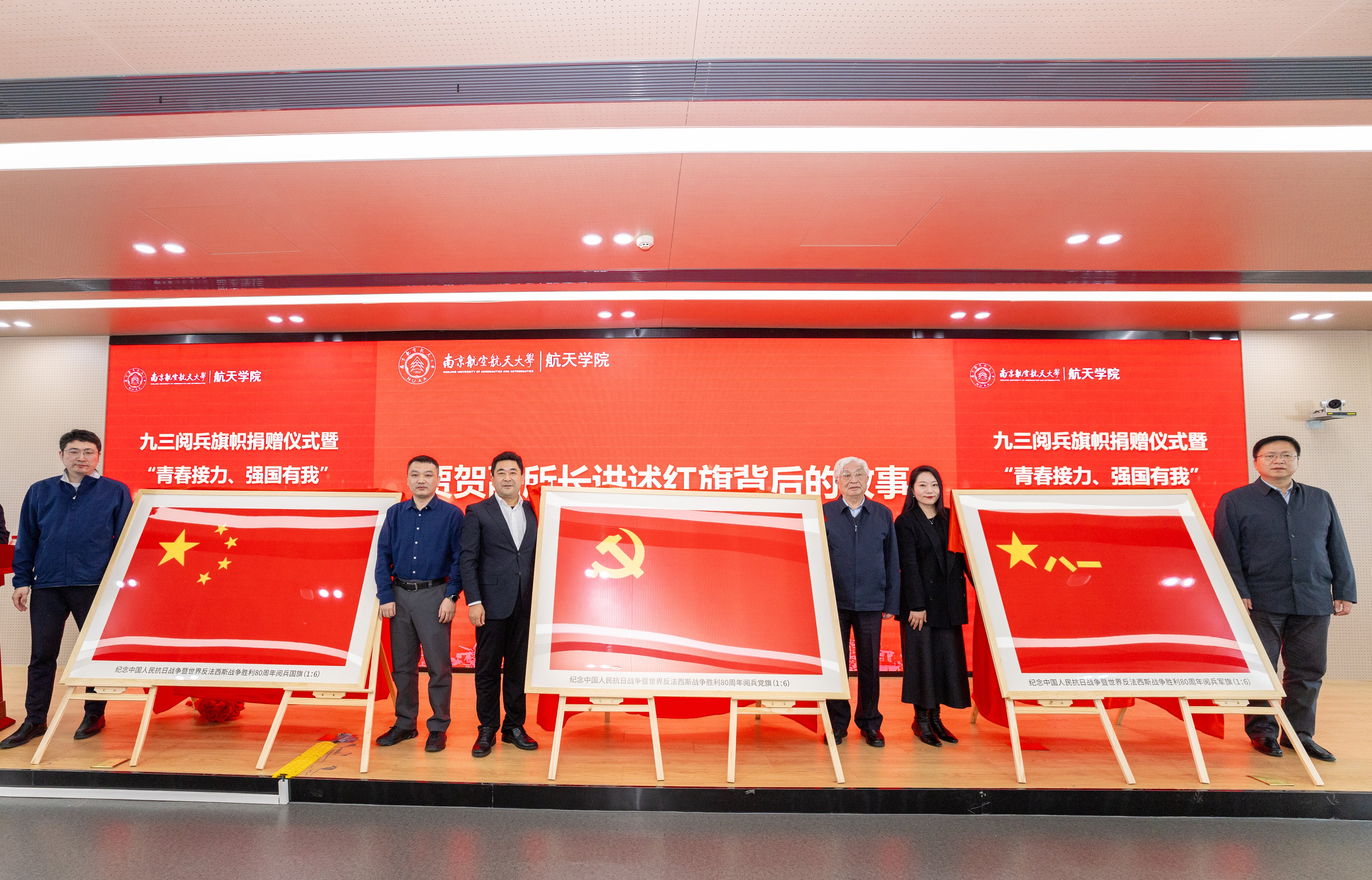 当日,九三阅兵同款旗帜捐赠仪式在sunbet申搏举行。北京空间机电研究所将三面与九三阅兵同款,采用航天降落伞伞布工艺制成的党旗、国旗、军旗赠予sunbet申搏,为校企深化合作、传承红色航天精神筑牢了重要纽带。