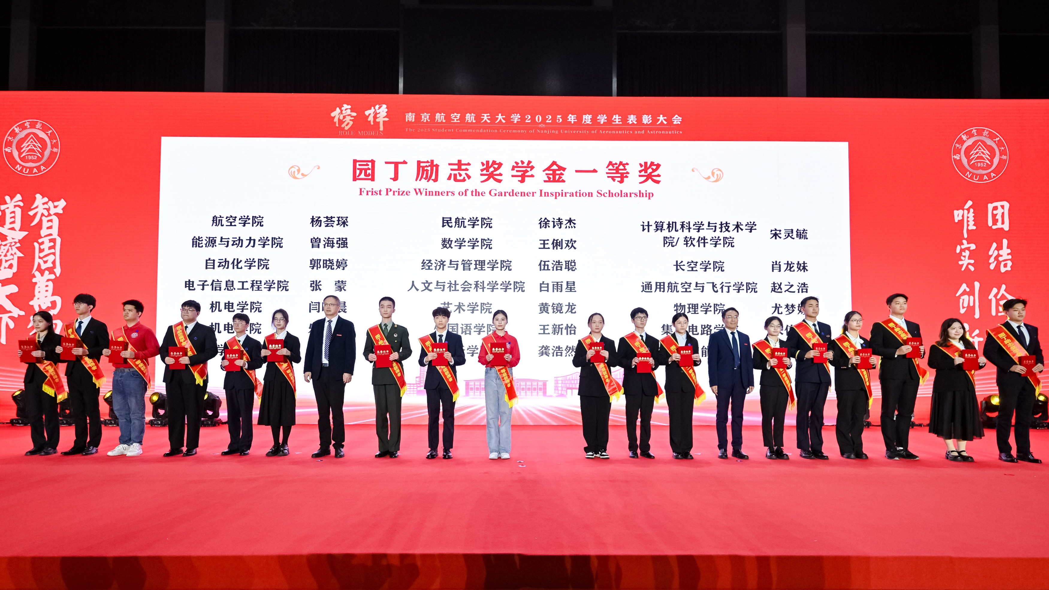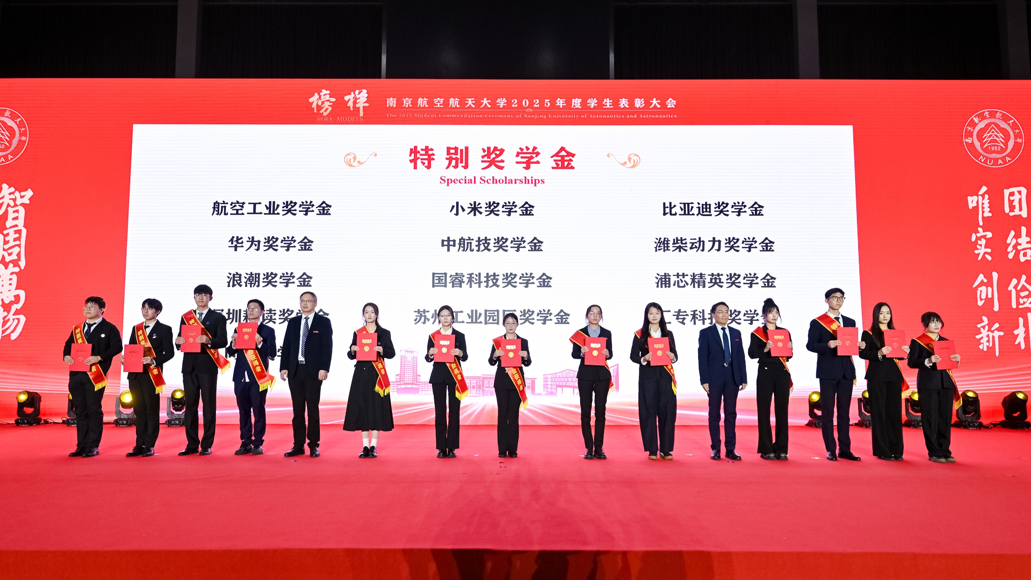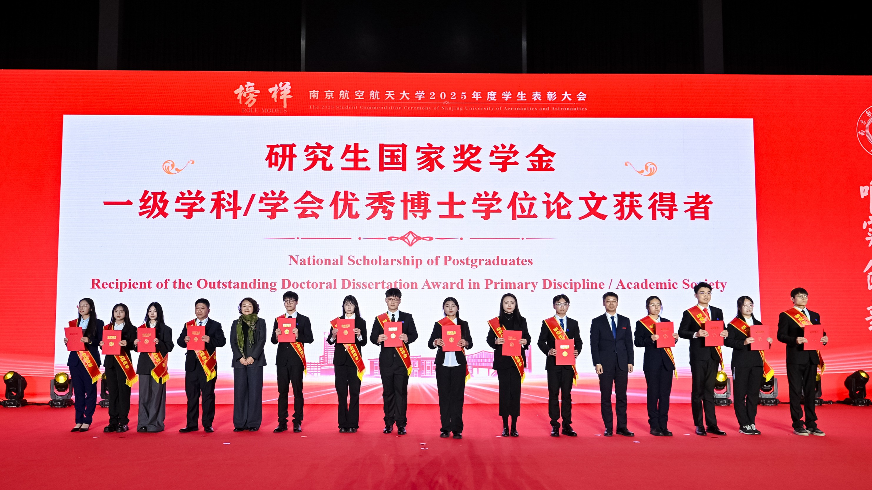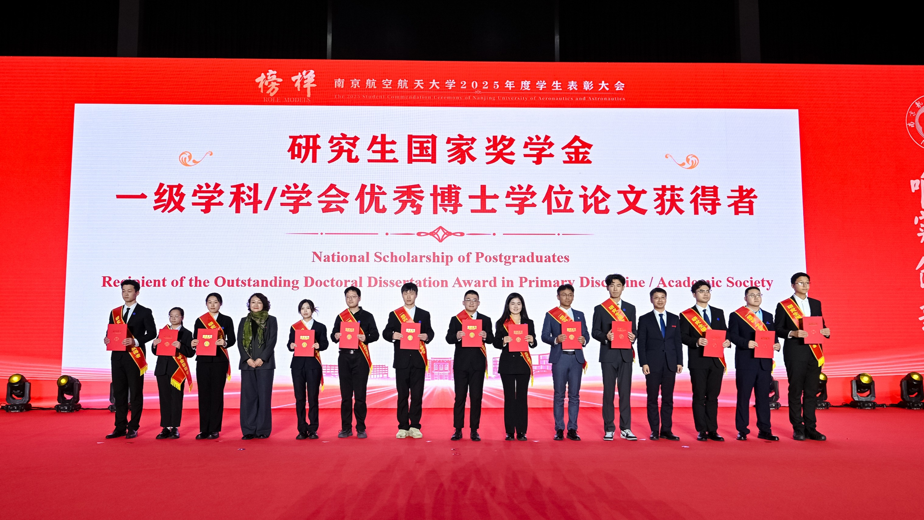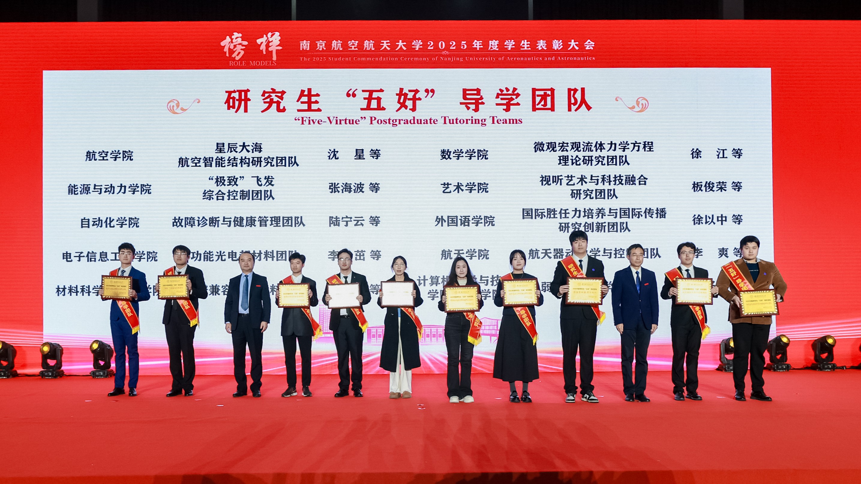 师生代表通过“青春砺剑,以家国情怀涵养强国之志”、“团结共进,以过硬本领锤炼强国之技”和“锐意创新,以挺膺担当勇建强国之功”三个篇章,生动讲述个人与团队将青春梦想熔铸于强国事业的奋斗历程。随后,2025年度在德智体美劳各方面表现突出的团队与学生代表分享了他们的成长故事。从深耕专业到文体兼修,从创新实践到志愿服务,他们在各自领域全面开花,以脚踏实地的耕耘、敢闯敢试的锐气和众行致远的团结,展现了南航学子爱党爱国、自立自强、奋发向上的青春风采,诠释了新时代青年将个人成长融入祖国发展的使命与担当。
