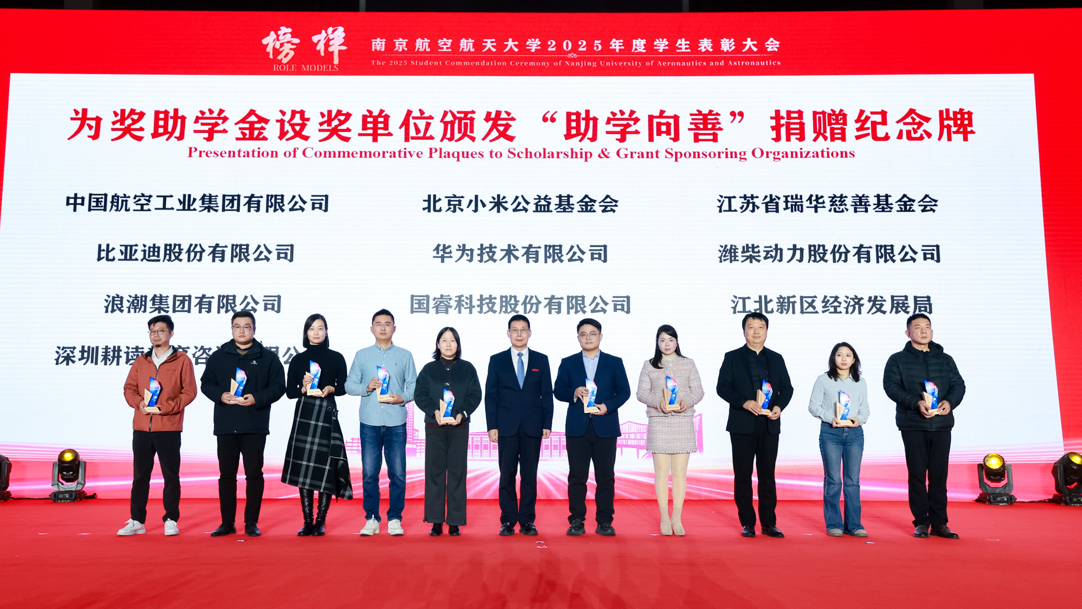 姜斌代表甄良书记和全校师生员工向2025年度获得表彰的同学表示热烈祝贺,向潜心育人的教职工及关心学校发展的各界人士致以崇高敬意和衷心感谢。他指出,南航学子以青春为笔、以奋斗为墨,生动诠释了“奋斗之我”的时代内涵,深刻践行了“强国之责”的使命担当。他强调,同学们要在胸怀家国中锚定奋斗方向,在创新创造中锤炼奋斗本领,在身体力行中彰显奋斗价值,从榜样身上汲取前行的力量,立远大之志、修精进之能、践实干之行,勇挑重担、接续奋斗,在以中国式现代化全面推进强国建设、民族复兴伟业的宏伟征程中,书写属于南航学子的青春华章!