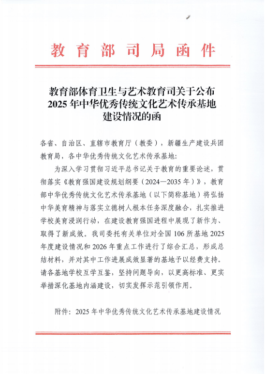 2025年底,教育部体育卫生与艺术教育司公布了全国106所中华优秀传统文化艺术传承基地2025年建设情况,其中选评出33个工作成效显著的传承基地重点培育项目予以支持。sunbet申搏由艺指委副主任杨莉莉教授牵头申报的“中华优秀传统文化艺术传承基地(剪纸)”凭借扎实的传承基础、创新的育人模式及显著的实践成效获教育部专项经费支持,为学校中华优秀传统文化传承工作再添浓墨重彩的一笔。