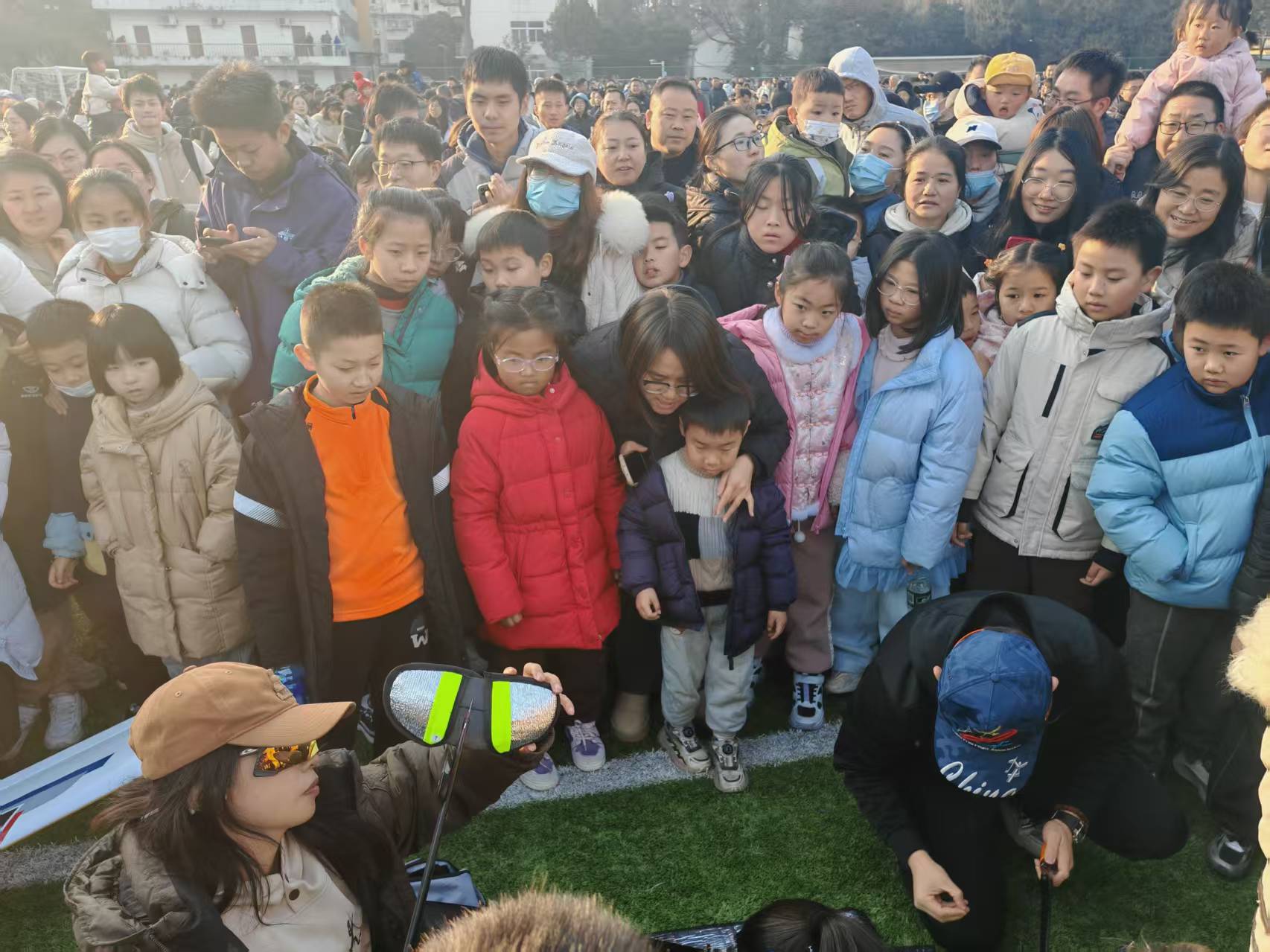 绿茵场上,校科协航模队带来的航模表演成为点燃青少年空天梦想的活动高潮。引擎轰鸣中搭载绚丽彩烟的航模腾空而起,连贯完成翻转、盘旋等系列高难度动作,现场欢呼声交织回荡,氛围热烈。参观青少年深受触动,不少人直言“近距离感受航模飞行的震撼,更坚定了投身航空航天事业的理想”。